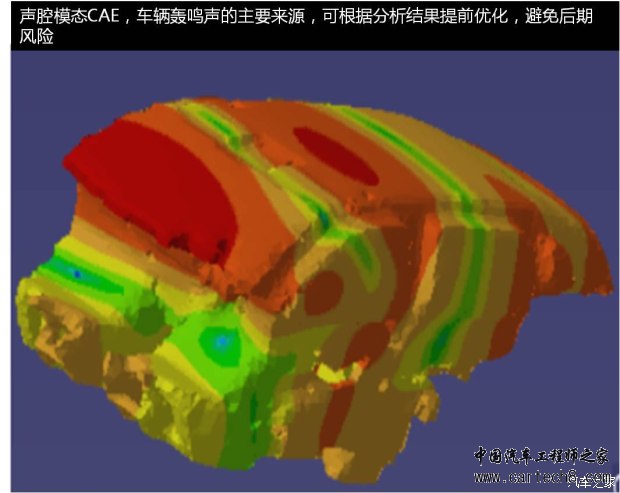 数据设计完成后开始进入虚拟验证阶段,在这个阶段,车子的数字模型基本已经完成,工程师们开始借助于各种专业的CAE软件对车子的NVH性能进行仿真模拟,计算各种指标是否达标。在NVH方面,大约需要进行100多项整车及系统级的专业CAE分析。例如:白车身、内饰车身及其他总成部件模态刚度CAE分析,NTF、VTF传递函数CAE分析,关键连接点动刚度CAE分析……