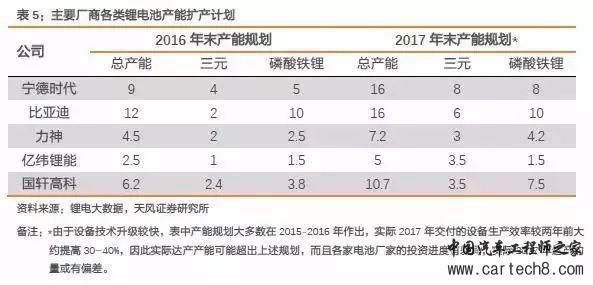 目前国内主流动力锂电池的正极材料分为磷酸铁锂和三元两大种类。其中磷酸铁锂是目前最安全的锂离子电池正极材料,其循环寿命通常在2000次以上,再加上由于产业成熟而带来的价格和技术门槛的下降,使得很多厂商出于各种因素考虑都会采用磷酸铁锂电池。然而磷酸铁锂电池在能量密度方面则存在明显的缺陷,目前磷酸铁锂电池龙头比亚迪磷酸铁锂单体电芯能量密度为150Wh,2017年底比亚迪预计将能量密度提升到160Wh,理论上磷酸铁锂能量密度很难超过200Gwh。