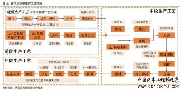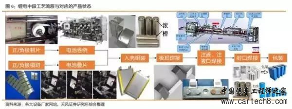 锂电池制造过程中,中段工艺主要是完成电池的成型,主要工艺流程包括制片、极片卷绕、模切、电芯卷绕成型和叠片成型等,是当前国内设备厂商竞争比较激烈的一个领域,占锂电池生产线价值量约30%。