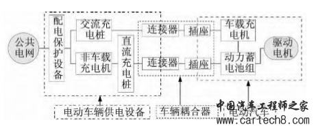 图3电动汽车充电设施与电网及电动车间连接示意图