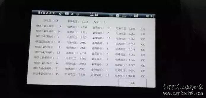 这是即将充满电时电池组的情况(可见楼主的车96%跳满,因为现在马上就满了)。唐和秦充电的截止电压应该都在3.7V左右,有电芯超过3.7V则马上停止充电,楼主这个照片拍完的瞬间,就停止充电了。可以看到这个电池组,最低电压电芯的电压也超过3.52V,可见这台车的均衡状态非常不错。