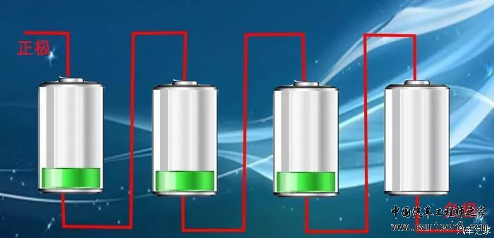 连接方式为串联(全部电芯串联),串联的电池如下图,形象一点说,就是类似于我们以前用过的手电筒,几个电池头尾相接。