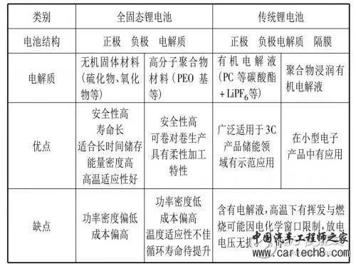 表 1 对比了传统锂电池和全固态锂电池,从中可了解固态锂电池的基本特性。进一步,如表 2 所示,针对车用电池应用的期望要求,基于自身特性,固态电池体系逐一给出可能的解决思路。