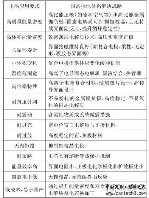 表 2 电池应用要求与固态电池体系解决思路