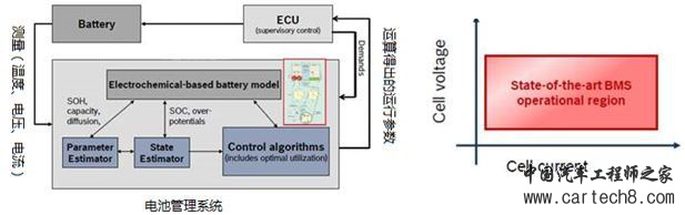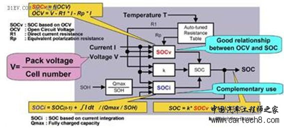 电池系统中最核心也是最难的一部分就是SOC和SOH的估计。SOC估算常见的有安时积分法(SOCI),和开路电压标定法(SOCV),安时积分最大的问题是随着时间的推移误差会越来越大,开路电压标定的问题是,电池需要在静置很长时间以后的开路电压对应的SOC才是准确的,汽车在行驶的时候采集的电压用来标定SOC那是不准确的。实际的使用中,一般以SOCV为主用SOCI,在实际使用中也在用一定的卡尔曼滤波法,神经网络法来提高SOC的计算,但是限于MCU的运算速度和能力,整个算法的复杂度是有限制的。
