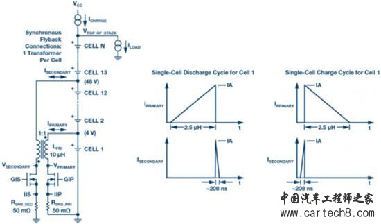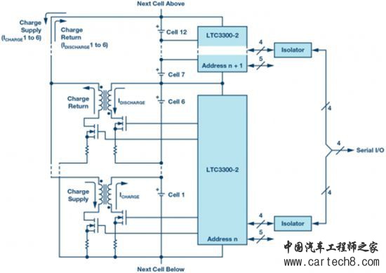 LTC3300-2(见图4)是专为满足高性能主动均衡需求而设计的新产品。高效率、双向、主动均衡控制IC LTC3300-2是高性能BMS系统的关键组成部分。每个IC可以同时均衡多达6个串联连接的锂离子或磷酸铁锂电池单元。