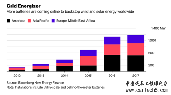 在电网方面,虽然天然气正在逐步取代煤炭成为发电动力的新选择,但是天然气自身也感受到了电池所带来的压力。在加利福尼亚州和亚利桑那州,PG&E以及Pinnacle Eest等企业都已经放弃了天然气,转而使用电池,因为电池系统让他们能够对电力进行存储,并且在需要的时候再将电力进行输出。Southern California Edison的一位高管表示:“电池就像是培根一样,能把一切变得更好。”
