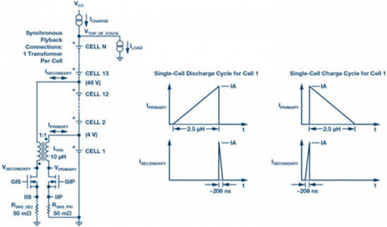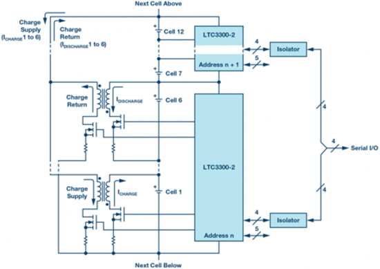 LTC3300-2(见图4)是专为满足高性能主动均衡需求而设计的新产品。高效率、双向、主动均衡控制IC LTC3300-2是高性能BMS系统的关键组成部分。每个IC可以同时均衡多达6个串联连接的锂离子或磷酸铁锂电池单元。