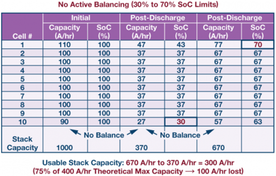 在电池包使用寿命中的某个时间点,电池单元老化的差异将不可避免地造成电池单元之间的容量不匹配。只有主动均衡解决方案才能恢复容量,根据需要将电荷从高SoC单元重新分配给低SoC单元。为在电池包使用寿命期间实现最大容量,需要通过主动均衡解决方案来给单个电池单元有效充电和放电,以使整个电池包维持SoC均衡。