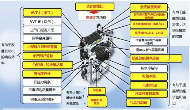 高速燃烧技术是帮助提升发动机热效率的关键词之一,具体到这台新2.0L发动机上,主要是通过增加气体紊流程度、高压缩比(传统发动机13:1,混动系统14:1)、精确控制喷油量以及增强燃油雾化来实现这一快速燃烧技术的。那么具体到每一个细节,丰田都做了什么样的改进呢?