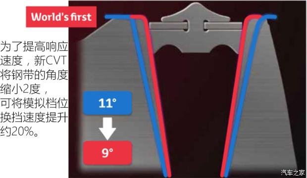 Direct Shift CVT:丰田的新无级变速器不仅具有TNGA架构下轻量化和小型化的特点,更是首次在传统的CVT上加装了一组传动齿轮,以此来直接驱动车辆起步,从而减轻钢带的负荷和磨损,因此这套变速器的名字——直接换档变速器也由此而来。在性能方面,这套CVT具有更高的传动效率和更好的燃油经济性,将燃油效率提升了6%。