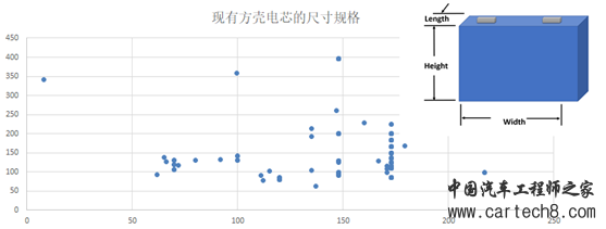 由于不同的电池设计水平不同,电芯企业在电芯的宽度、高度和厚度方面做出了一些调整,主要的调整方向是宽度和厚度,也有考虑在高度上做文章的,采用1.5倍或者2倍的厚度做较大规格的电芯。