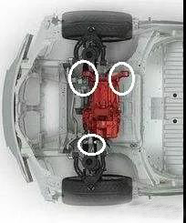 动力总成悬置系统对于前舱变形吸能空间也有明显影响,应尽量避免将悬置支架布置在动力总成的前方和后方,悬置支架结构尺寸也要尽量小。图2展示了特斯拉model S的悬置布置方案,采用左前+右前+左后布置方式,而且悬置支架结构本身也比较紧凑,减少了对吸能空间的侵占。
