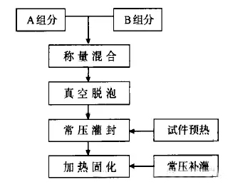 环氧树脂灌封有常态和真空两种工艺。下图为手工真空灌封工艺流程。
