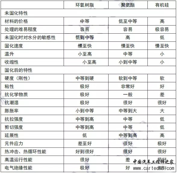 成本:有机硅树脂>环氧树脂>聚氨酯;