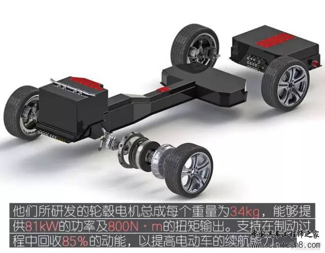 这就意味着每个车轮可完全独立控制,能够轻而易举的实现轮间差速和扭矩矢量控制控能。因为不需要减速器、传动轴以及差速器,可以给车辆带来了更加灵活的空间设计。