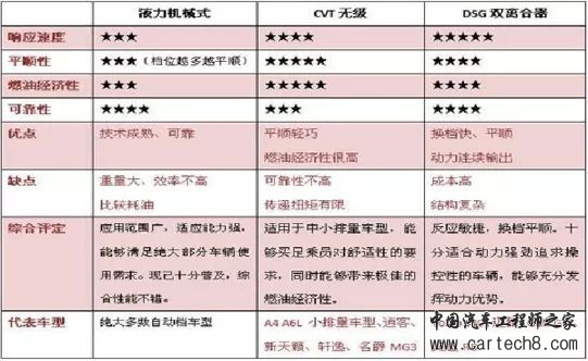 据介绍,适用于混合动力技术的自动变速箱有三种:液力机械式、CVT无级式、DSG双离合器式。