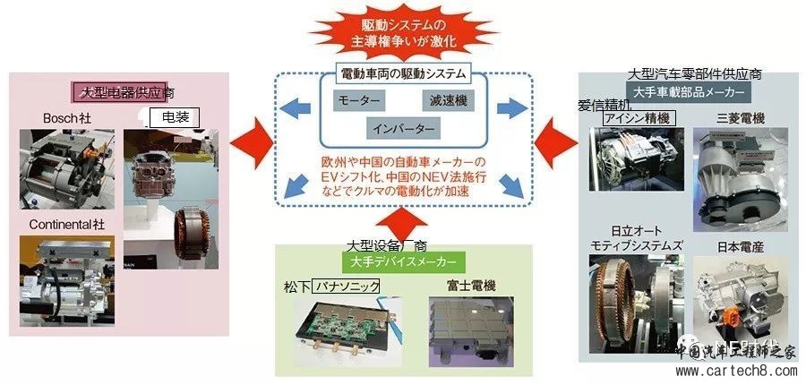 围绕驱动系统的开发竞争日益激烈。由于目前还没有掌握绝对主导权的零部件制造商,各种供应商鱼龙混杂,都加大了产品开发的投入力度。
