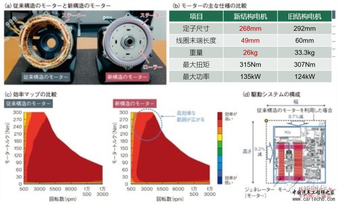 为了实现小型化,本田同时还缩短了从定子突出的线圈部分(“线圈末端”)。本田技术人员认为线圈末端部分“对电机工作没有贡献”。
