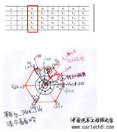 1.如果电机欠磁欠力(1 1),给定U2,则给定电压与电机当前位置的电压夹角介于[0° 60°]之间,实现增磁增力;