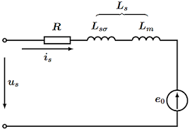 那么电流是如何产生的呢?我们可以把电机的每一个绕组想象成一个在磁场中旋转的电阻+电感,如下面的等效电路:
