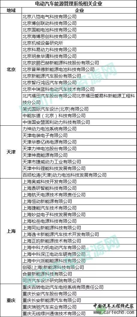 从事电动汽车能源管理系统的外资企业有:Calsonic Kansei(康奈可)、Continental Automotive(大陆)、DENSO CORPRATION(电装)、LG电子株式会社、KEFICO(凯菲克)等。