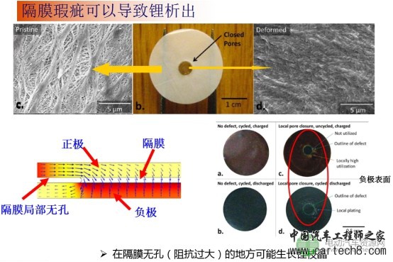 据介绍,隔膜瑕疵也会导致锂电池中有锂枝晶析出。何主任举例说:“假设在隔膜里面有一个地方被一个粉尘堵住了,就会出现周围沉积现象,引起安全隐患。这也是隔膜难制造,国内电池企业需要采用进口隔膜的原因之一。”