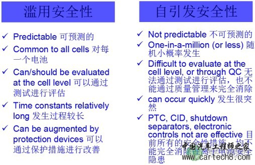 据了解,近年电动汽车因为动力电池故障引起起火的事情不断发生,这也引起了各界的关注。电池安全性的标准也顺应而生,标准的制定固然减少了安全事故的发生,但仍不能解决安全隐患。通过分析发现,目前制订的标准都是针对滥用安全性,就是事故都是通过人为的破坏电池发生的,但是实际发生事故是自引发安全性,是因为内部瑕疵产生的。换句话讲,就是制定的标准与电池发生事故的原因不符合。