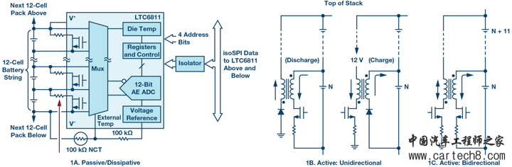 图1. 电池单元均衡典型拓扑结构。