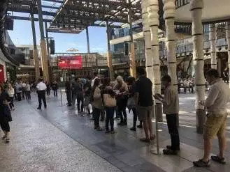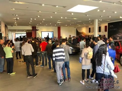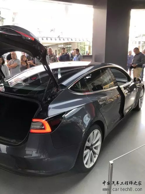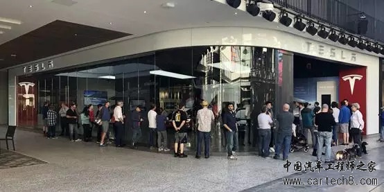 瞧,展厅还未开门,已经有几十上百人提前一个半小时守候在展厅门外了。通常都要排队一个半小时到两个小时才能一睹 Model 3 的风采。