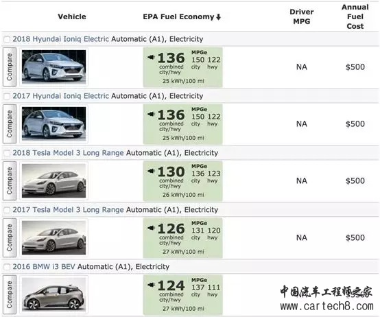 也就是说 2018 年份的 Model 3 的电能换算成燃油单位后,每加仑燃油可以行驶 130 英里(约 209 公里,综合路况)。