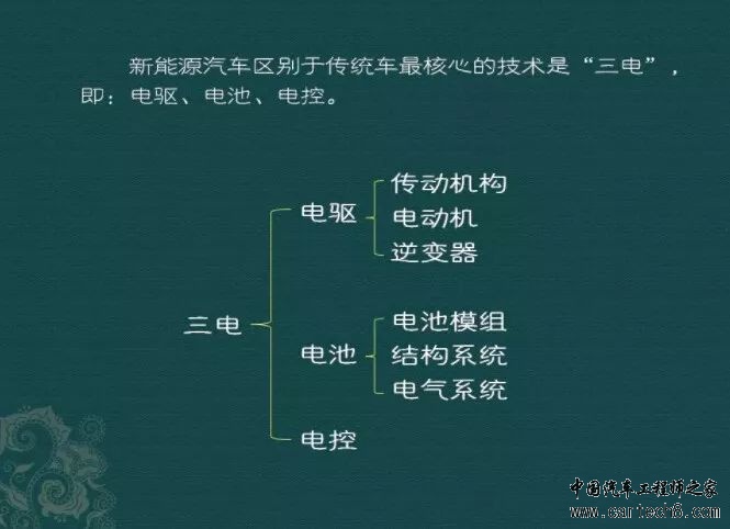 新能源汽车区别于传统车最核心的技术是“三电”,包括电驱动,电池,电控。