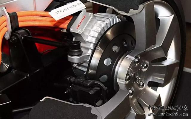 更进一步,当然业界已经提出了轮毂电机的方案,直接把电机+减速器的组合塞进轮圈内部,甚至可以把减震器也内置其中。由此一来,四个车轮全部通过独立电机驱动,就能变成智能化程度非常高的四驱系统。不但舍去了复杂的传统多差速器机械四驱系统,还可以完全独立分配四个车轮的转矩,配合悬架的独特设计,甚至可以实现近似于原地掉头这样传统燃油车无法想象的“高难度动作”。不过,这种方案明显会增加簧下质量以及车轮的转动惯量,一定程度上影响操控和滤震性能,另外电机的散热设计也要变得更复杂。
