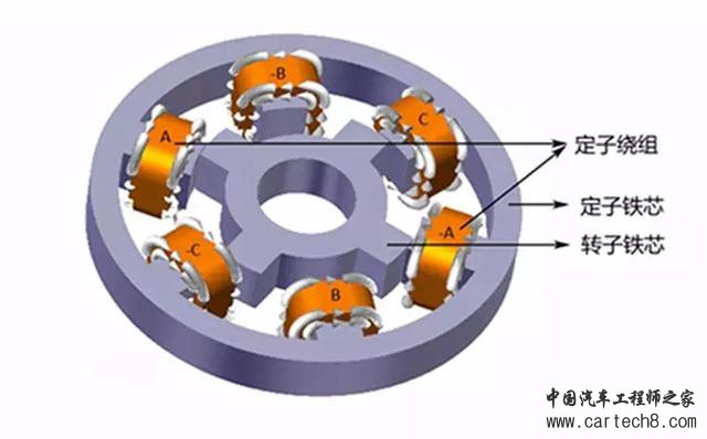 在这两者之上,还有一种更具有前景的开关磁阻电机。它的结构比鼠笼式电机更简单,转子不再是绕组或者鼠笼式导体,而是普通硅钢片叠压而成的,结构简单、散热条件好、体积轻、重量小、可靠性高、易于调速,功率密度和效率非常接近永磁同步电机,而且适用于恶劣环境、频繁启停和正反转,非常适合作为电动汽车的驱动电机使用。为数不多的缺点在于控制比较复杂、扭矩波动大、噪音偏大。它有望会在未来成为车用电机的一个新普及方向。