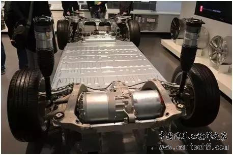 譬如MODEL S,将单电机+减速箱+差速器的一套组合放在了靠近前后车桥的位置。