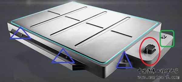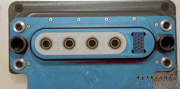 这是最早Better Place的设计雏形,分成2X2的设计思路,两端走液冷回路,中间信号引脚就费劲了。