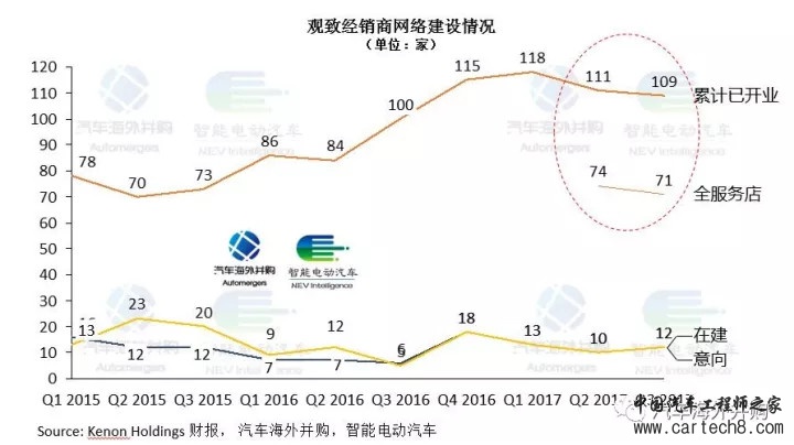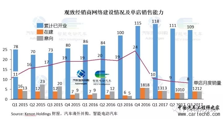 到2017年9月底,观致经销商网络共有109家,比一季度时的118家减少了9家,比二季度时的111家减少了2家,全服务店从二季度的人74家减少了3家到71家。