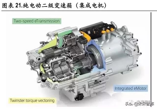 多挡化。目前全球主流纯电动汽车大都采用电机匹配单级减速器的架构,但随着能耗等要求的提升, 未来纯电动汽车有望逐步采用多挡变速箱。