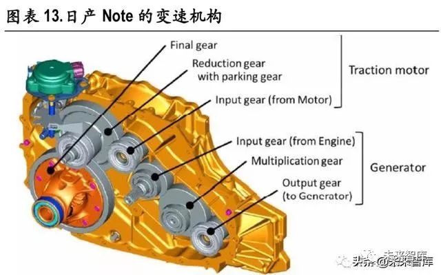综上所述,对于混动及纯电动汽车,纯电动及串联式混动需要单级减速器或多挡变速箱,并联式混 动变速箱与传统自动变速箱类似,而混联式等则需要专用混动变速箱。