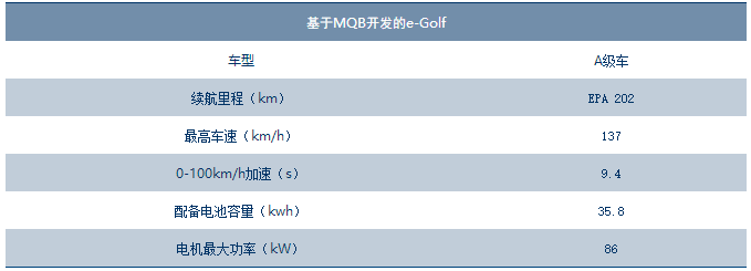 大众e-Golf是一款基于MQB平台开发的纯电动汽车