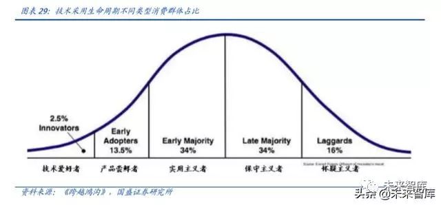 真实需求增长的背后是随着车型产品迭代升级,技术爱好者+产品尝鲜者两个消费群体的扩大,增长有望维持。根据技术采用生命周期理论,技术爱好者+产品尝鲜者群体属于早期消费群体,约占总消费群体约 15%,相比实用主义者(真正的大众群体)只关心需求而言,这两类消费群体更关心技术,享受新技术优点的同时,也包容瑕疵。对于这两类群体,并不需要电动车对燃油车有全面的优势,而只要在某些差异化体验即愿意支付溢价。而实用主义者消费群体对于新技术要求高,必须要求相比现有产品有明显优势,且可靠性高。这类消费群体需等新能源车相比燃油车有全面优势,劣势足以忽略不计时需求方才能启动。