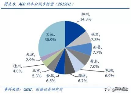 ➢ 观测点 2:非限购城市纯电动 A0 级,销量亦稳步增长。A0 级消费群体与 A00 级消费群体接近,但消费能力更强,相比插混/A 级车群体,这类消费群体更注重实用性能,作为代步车,驾驶简单、停车方便,2019H1 非限购城市销量 3.61 万辆,合肥、潍坊销量领先,比亚迪元一枝独秀,传祺、江淮增长明显。
