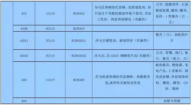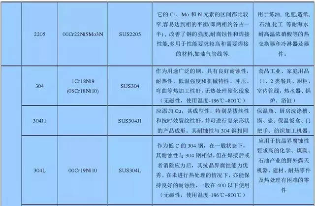 1、 304不锈钢。是应用量较大、使用范围最广的奥氏体不锈钢之一,适用于制造深冲成型部件和输酸管道、容器、结构件、各类仪表本体等,也可以制造无磁、低温设备和部件。