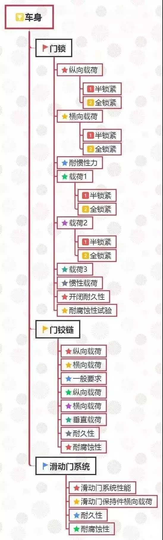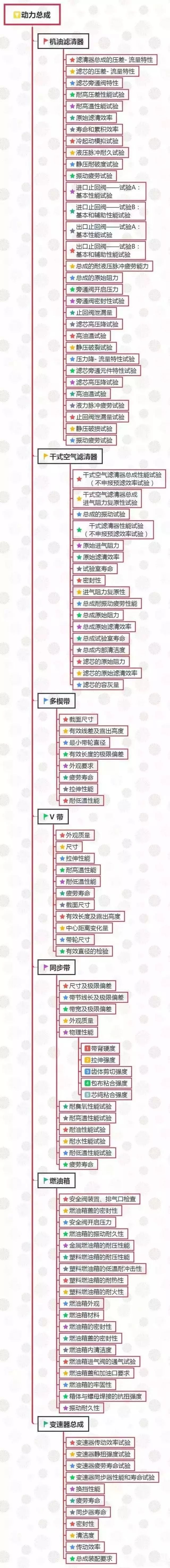 本文详细给出了动力总成、车身、内外饰和电子电器的检测项目。