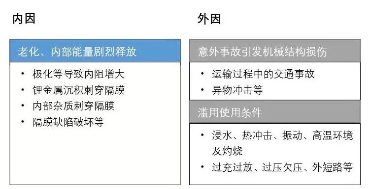 热失控现象的产生原因可以分为两类:内因和外因。内因主要指在电池设计及制造过程中产生的原因;外因主要指在电池运输、安装及运行维护过程中由于人员、外部条件等导致的原因。分类概括如下▼
