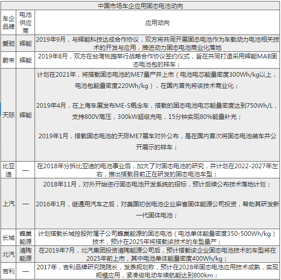 而随着国内如宁德时代、赣锋锂业等电池供应商对固态电池的持续投入和布局,相信国内更多的车企会加入到固态电池应用浪潮中,他们肯定不会错过这个领域。