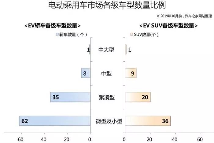 根据已上市及近期即将上市车型数据整理,目前整体电动车市场中,轿车与SUV的车型数量比例六四开,即轿车的数量更高;同时,按车型级别来看,统计车型中,微小型车占57%,紧凑型车占32%,换句话说,中型及以上的高级车只占比近一成,这与燃油车的各级销售占比大为不同。