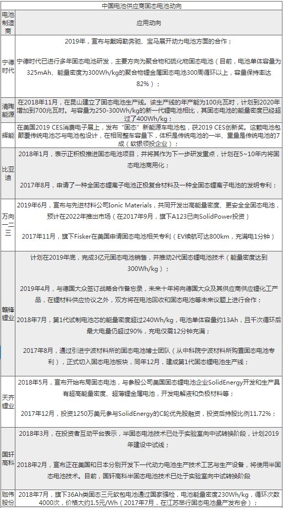 而中国也一直力争在该领域取得全球领先地位,所以在2017年2月由工信部等四部委联合发布的《促进汽车动力电池产业发展行动方案》通知中,便首次提出要重点推动固态电池等新体系动力电池的应用,力争使单体电池能量密度在2020年和2025年分别达到400Wh/kg以上及500Wh/kg。