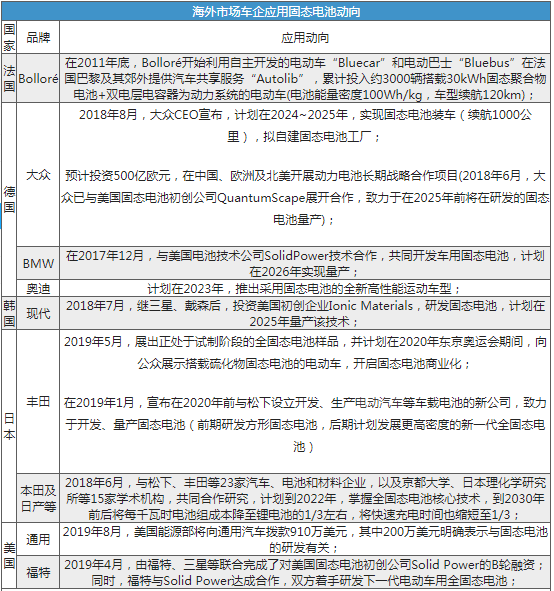 而韩国和欧洲车企,则大多通过与美国新兴初创公司进行战略合作,推进固态电池的研发,比如BMW、福特等都与美国电池技术公司SolidPower合作,其中福特更是对该公司进行了投资,以强化双发研发全固态电池的协同效果;无独有偶,现代汽车也在三星、戴森之后,投资于美国初创企业Ionic Materials,进行电动车用固态电池的研发,并计划在2025年量产。