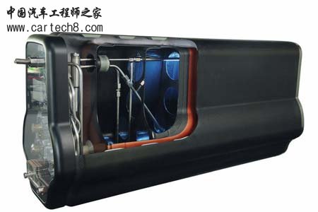 该复合材料容器采用复合材料,体积比传统圆筒式钢质容器减少1/3,电子辅助系统内置在容器外部包装,新容器体积细,易生产,易保养。今后,汽车入满10kg氢气将可以行驶500km。